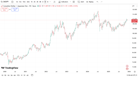 The compression of interest rates between Japan and Canada has not been priced in at all, and speculators who have plowed into the carry play to borrow in Yen and lend in Canadian Dollars have very little margin to play for now. Will this down move play out quickly? It is possible. Could it turn out to be a much bigger idea? Yes. Over time we could certainly have a sharp decline to re-test the 101.26 level, but I want to see how things develop before deciding whether to play for the bigger move or just the next decline towards 105.20. Frankly, earning 4% or 5% on this trade should be enough for now.