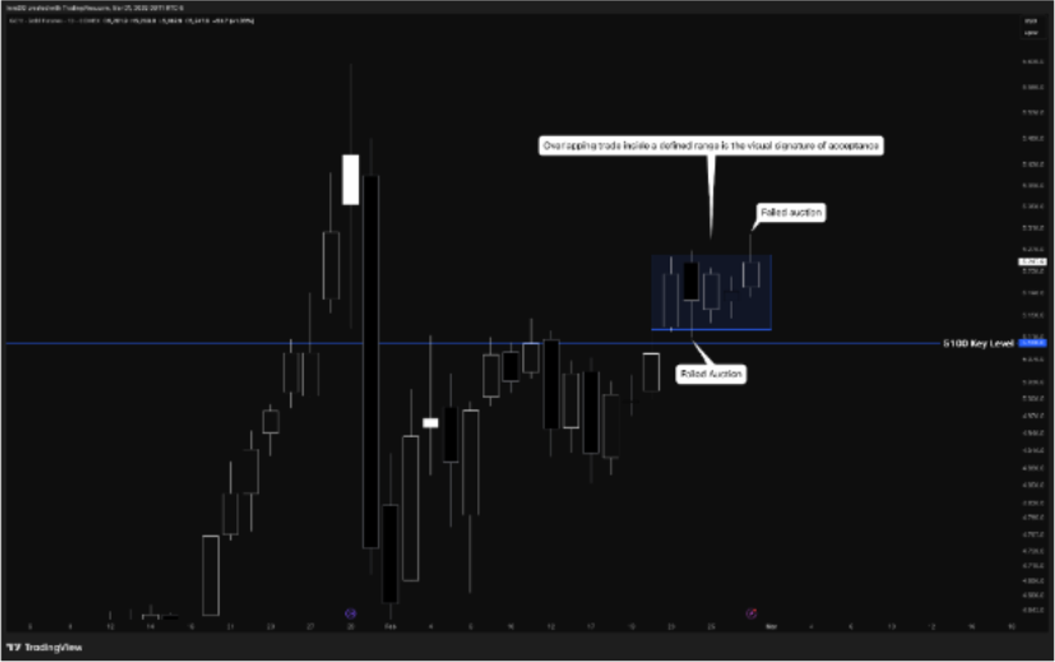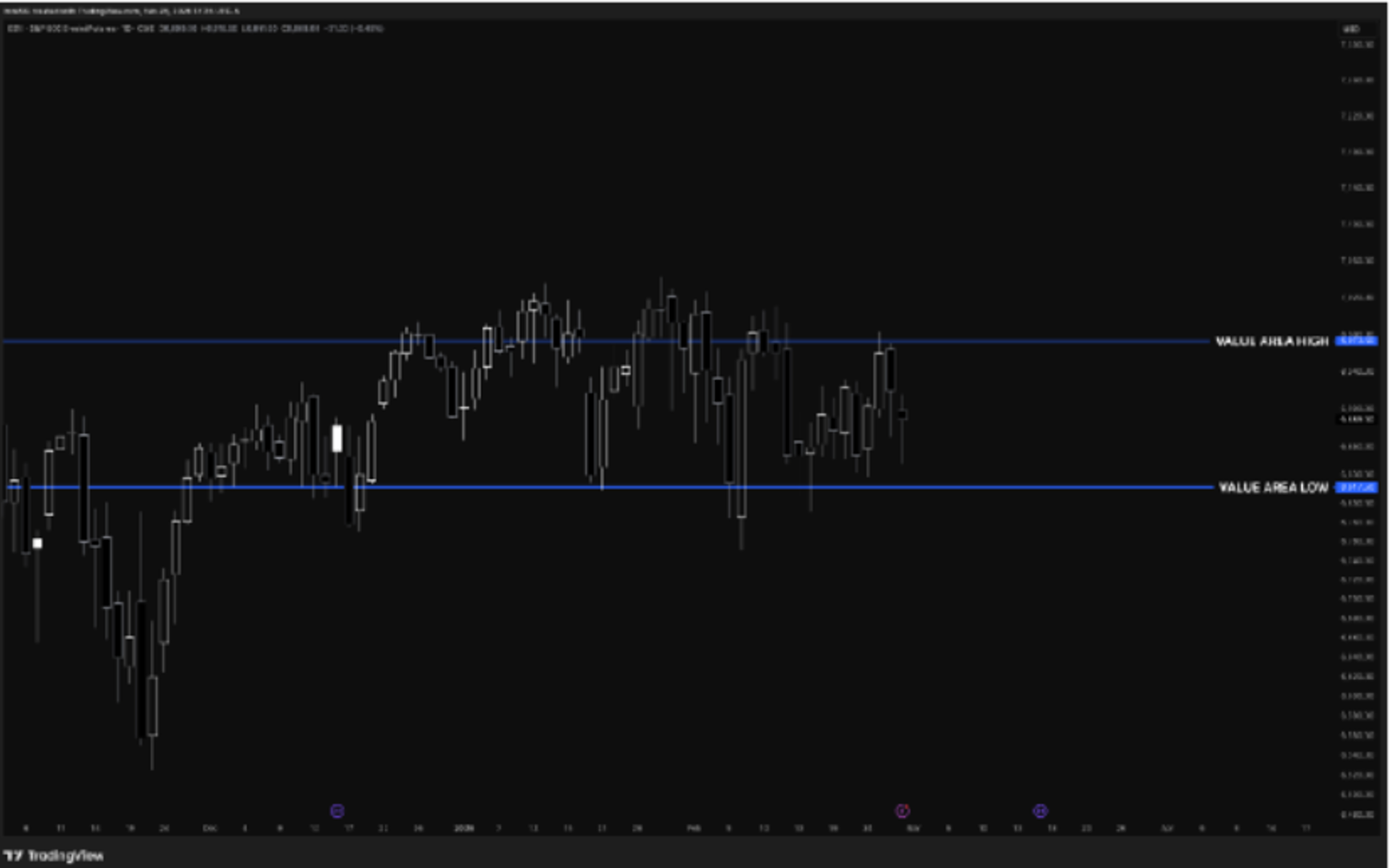 Until we can observe acceptance outside of the value area, rotational mean-reverting trades from the value area extremes remain the highest-probability setups.