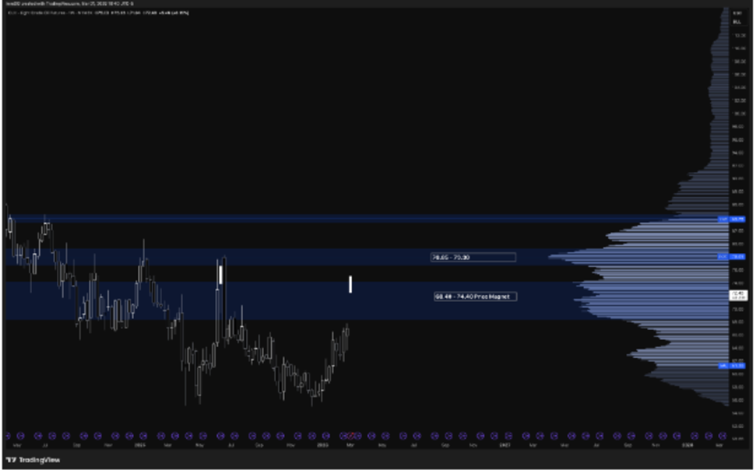 This week I am keeping a very close eye on two major distributions in CL. The first is a range between 68.40-74.40.