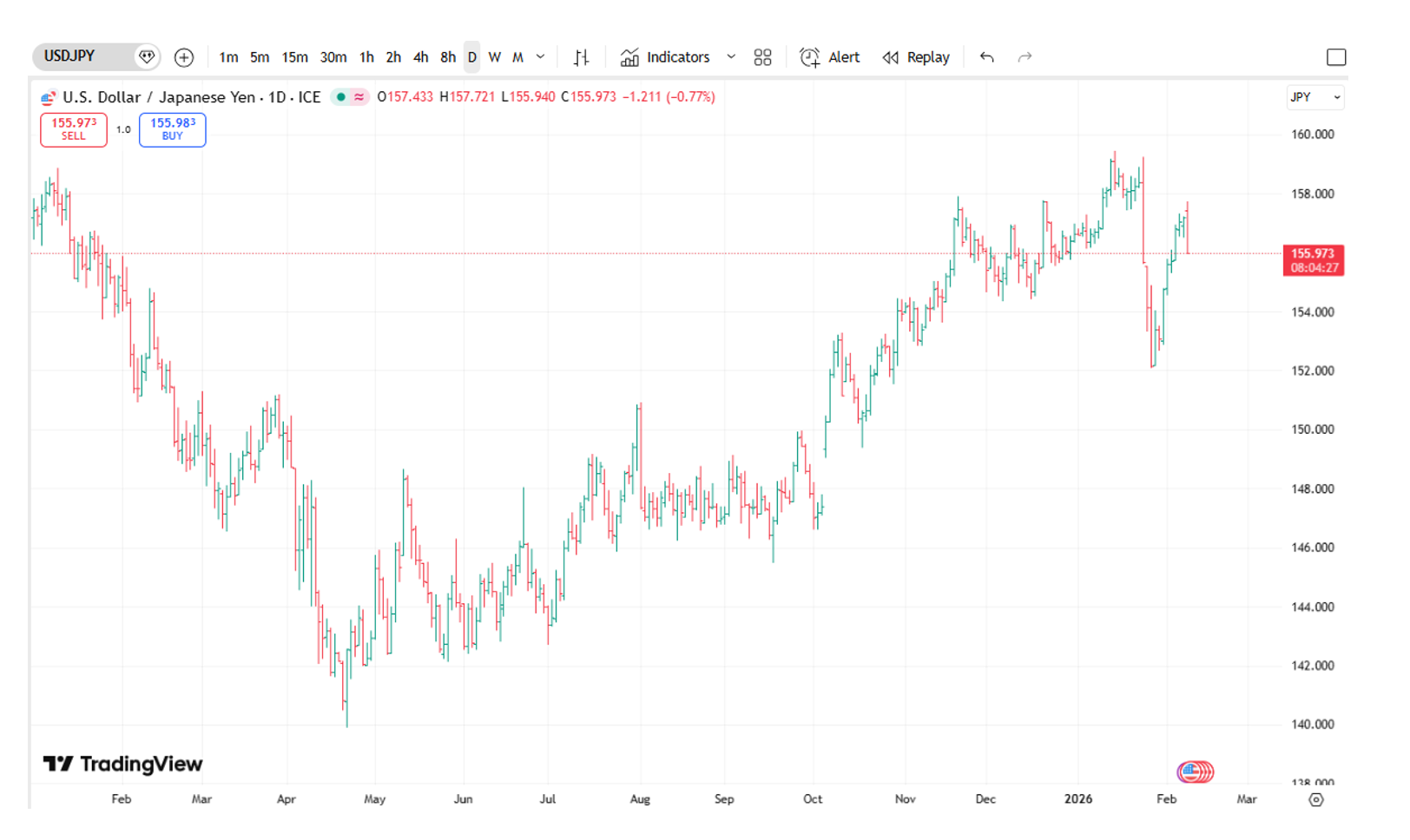 The lower end (¥160) reflects a weaker‑yen environment moderated by periodic FX intervention.