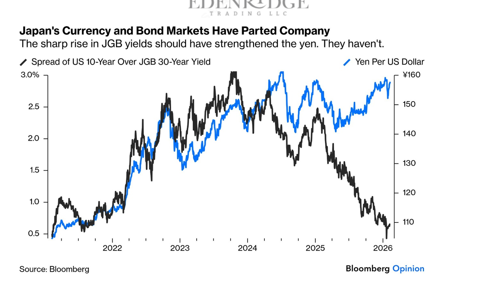 - JGB yields drift higher but not enough to attract foreign inflows – creating a slow erosion of confidence in the Yen without triggering a crisis.