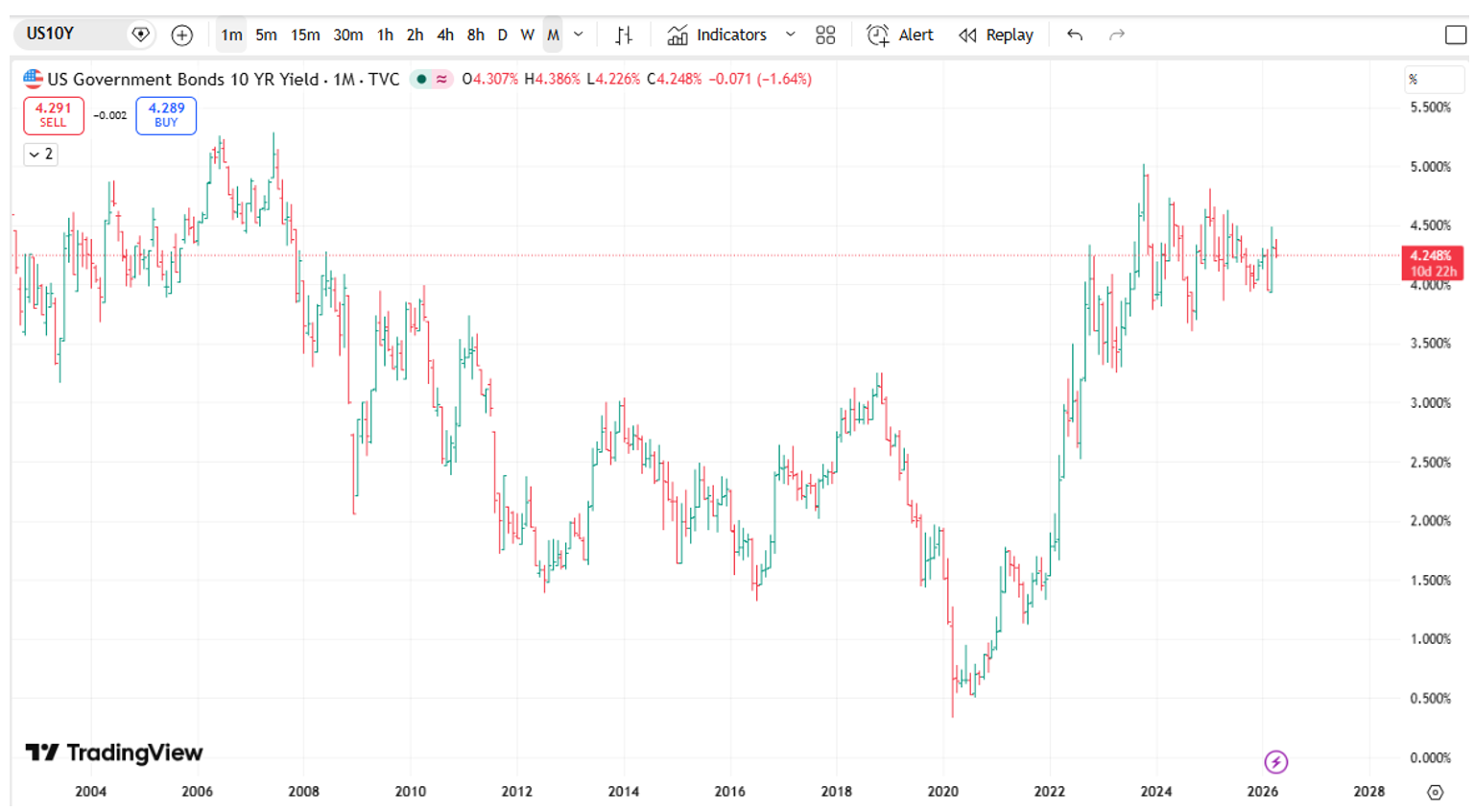 The S&P 500 is currently trading at approximately 22 times forward earnings. This is a multiple that matched the euphoric peak of 2021, when the 10-year Treasury yield was near zero. Today, that same yield is approaching 4.3%, testing the same levels we had on the eve of the Great Financial Crisis.